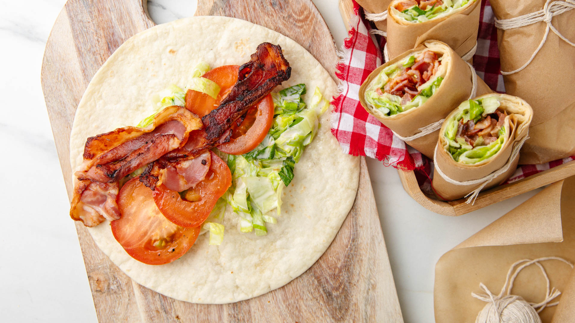 Want to make this at home? We used Mondo Butcher & Grocer Free-range Streaky Bacon, Fancy Hanks Original Mayo and Diego's Gowell Classic Wraps from the Dinner Twist Marketplace.