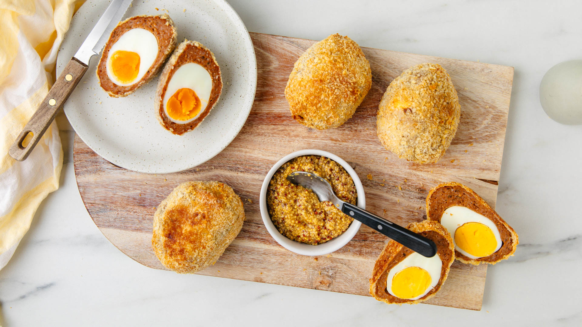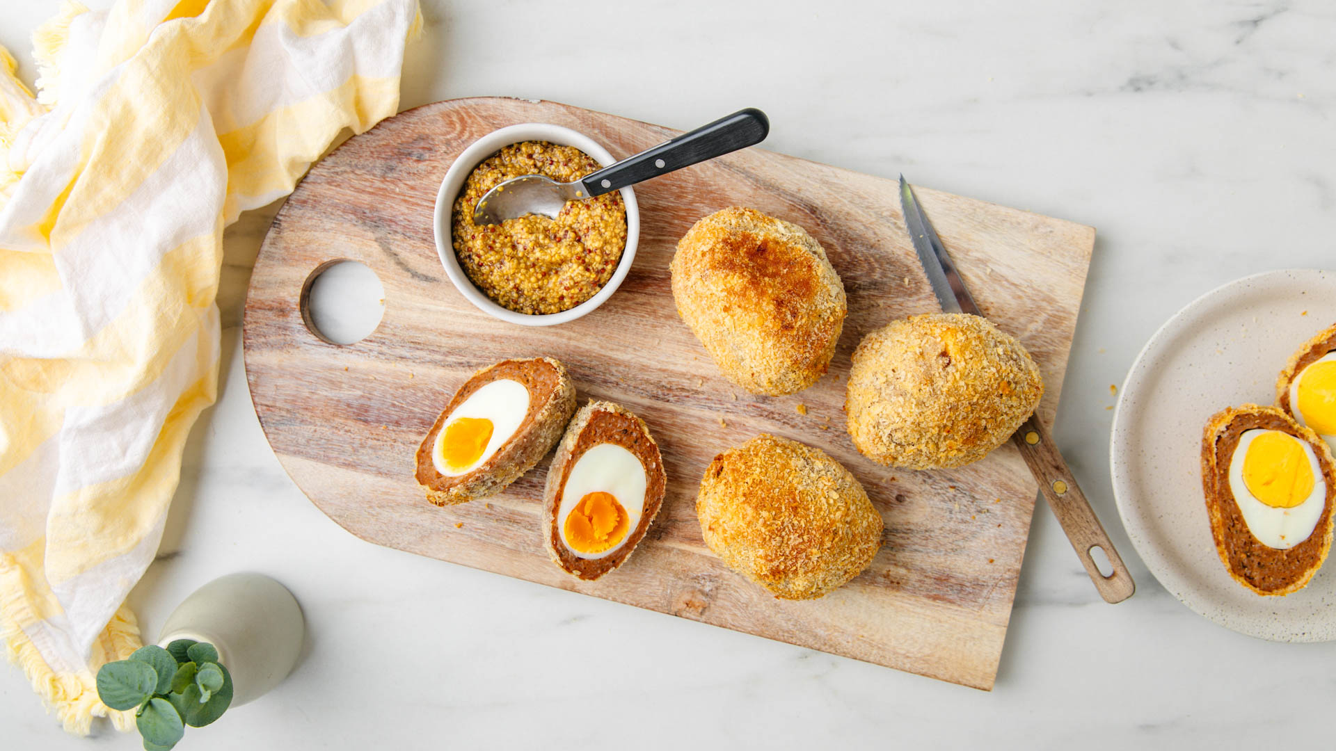 - Make ahead! Scotch eggs can be crumbed up to 24 hours ahead and kept covered in the fridge before baking.