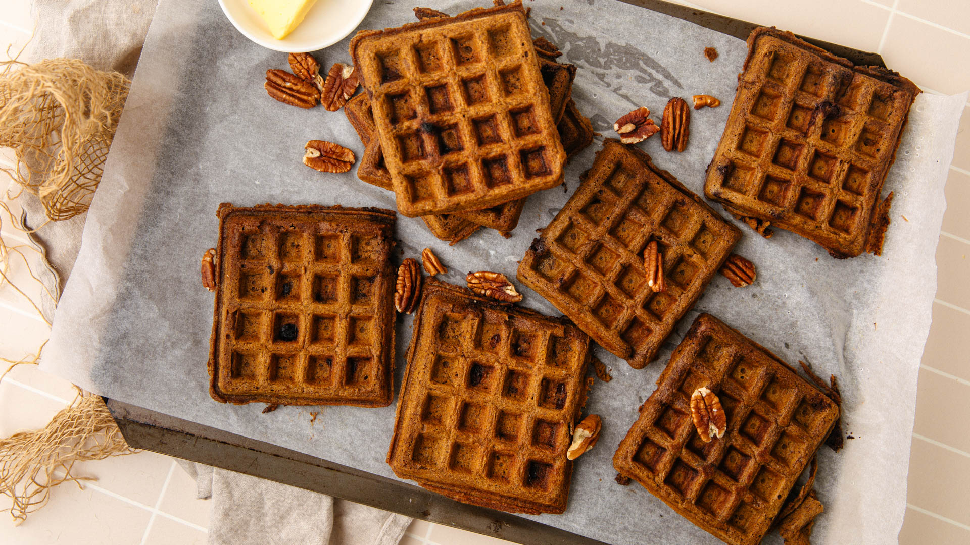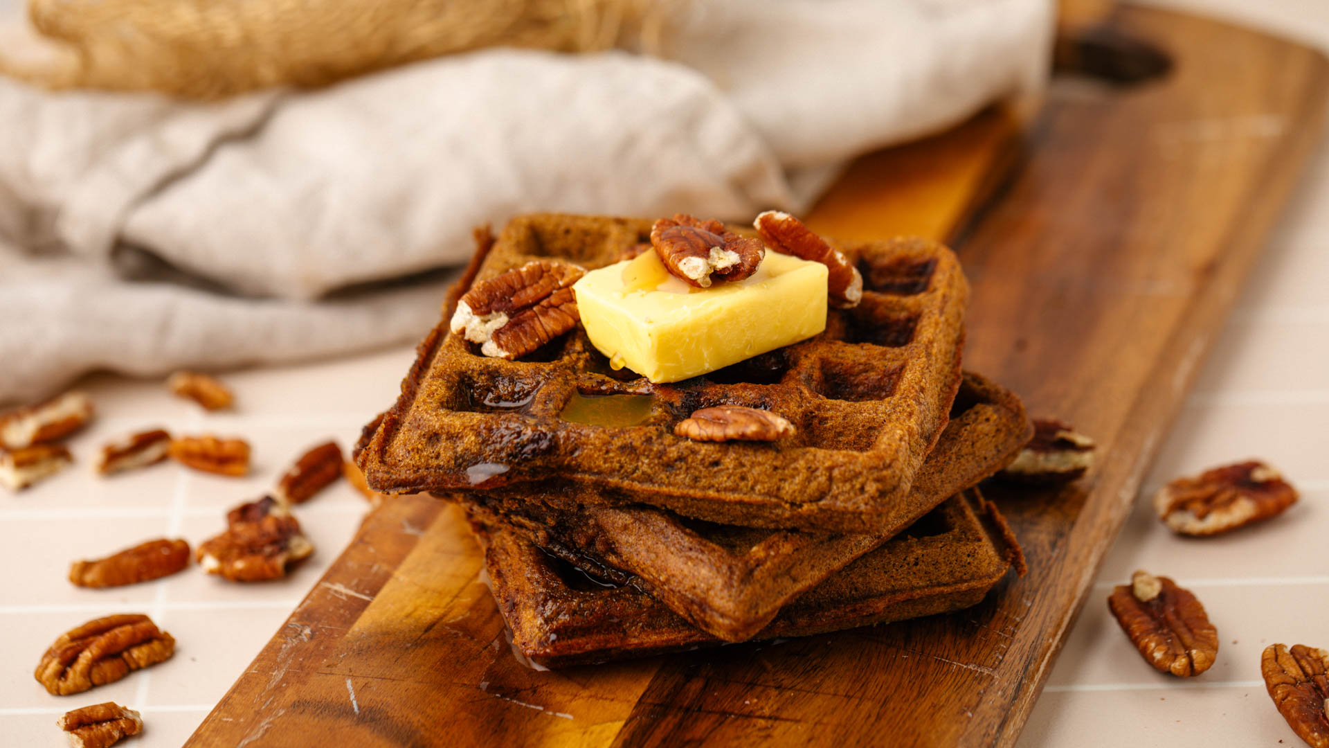 - Serve with butter, maple syrup and pecans.
