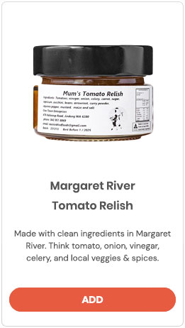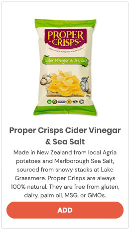 Want to make this at home? We used Margaret River Tomato Relish, Abhi's Wheat Burger Buns and Proper Crisps Cider Vinegar & Sea Salt from the Dinner Twist Marketplace.