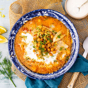 Mediterranean Quinoa Soup with Crispy Chickpeas