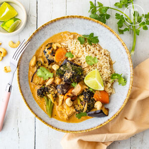 Roast Veggie Red Curry with Cashews and Brown Rice