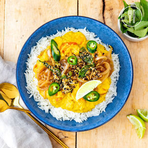 Lentil Dhal with Caramelised Onions and Crispy Curry Leaves