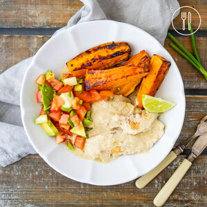 Coconut Marinated Fish with Sweet Potato and Fresh Salsa