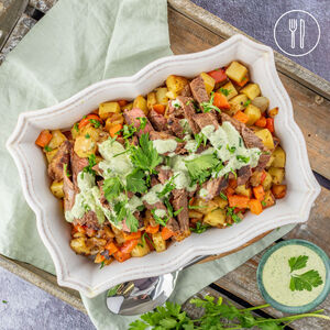 Seared Beef Steaks with Hash and Parsley Mayo