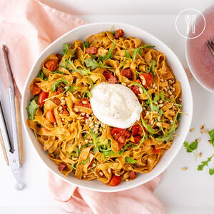 Spicy Chorizo Tagliatelle with Burrata