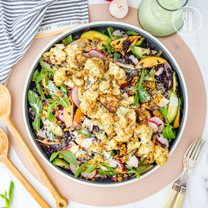 Green Curry Roast Cauliflower with Coconut Mint Dressing