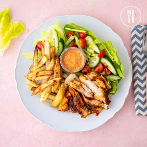 Souvlaki Chicken with Garlic Chips