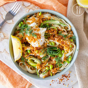 Lemon Ricotta Pasta with Poached Egg and Pangrattato
