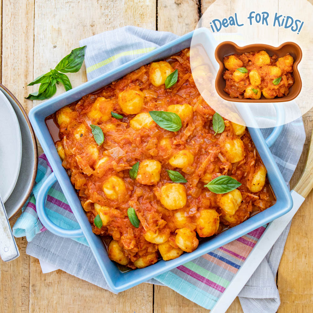 tomato sugo, gnocchi, streaky bacon, basil, brown onion, zucchini
