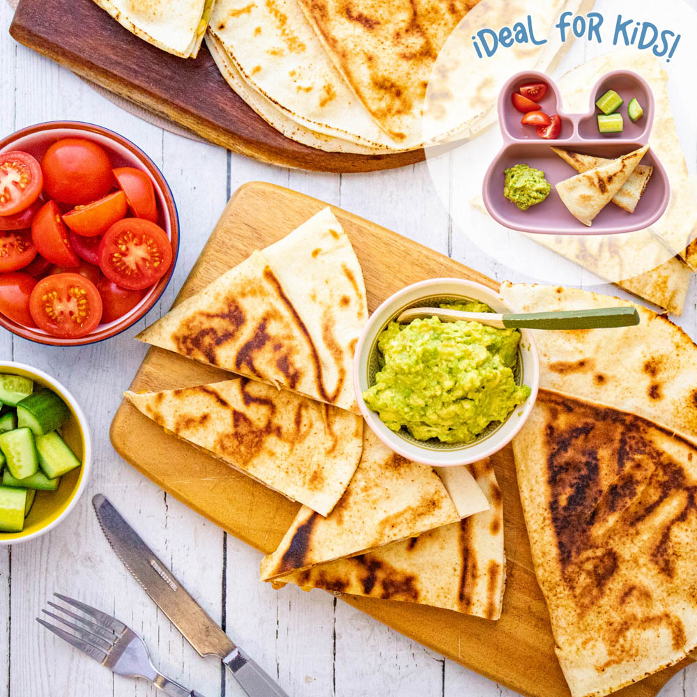 Creamy chicken & corn quesadillas served with crunchy veggies. Makes a great platter-style dinner!