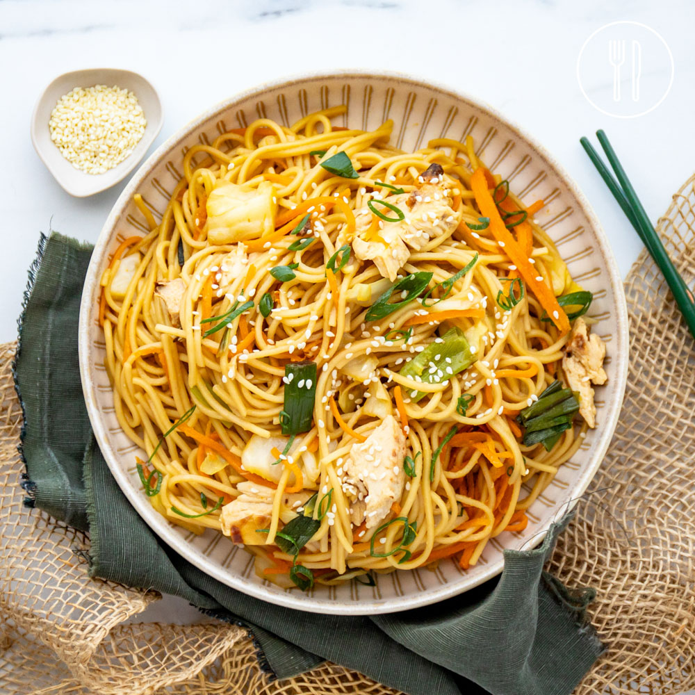 This quick and easy yakisoba is sure to please everyone at the dinner table! Packed with veggies, tossed with noodles, pre-cooked chicken breast and miso sauce.
