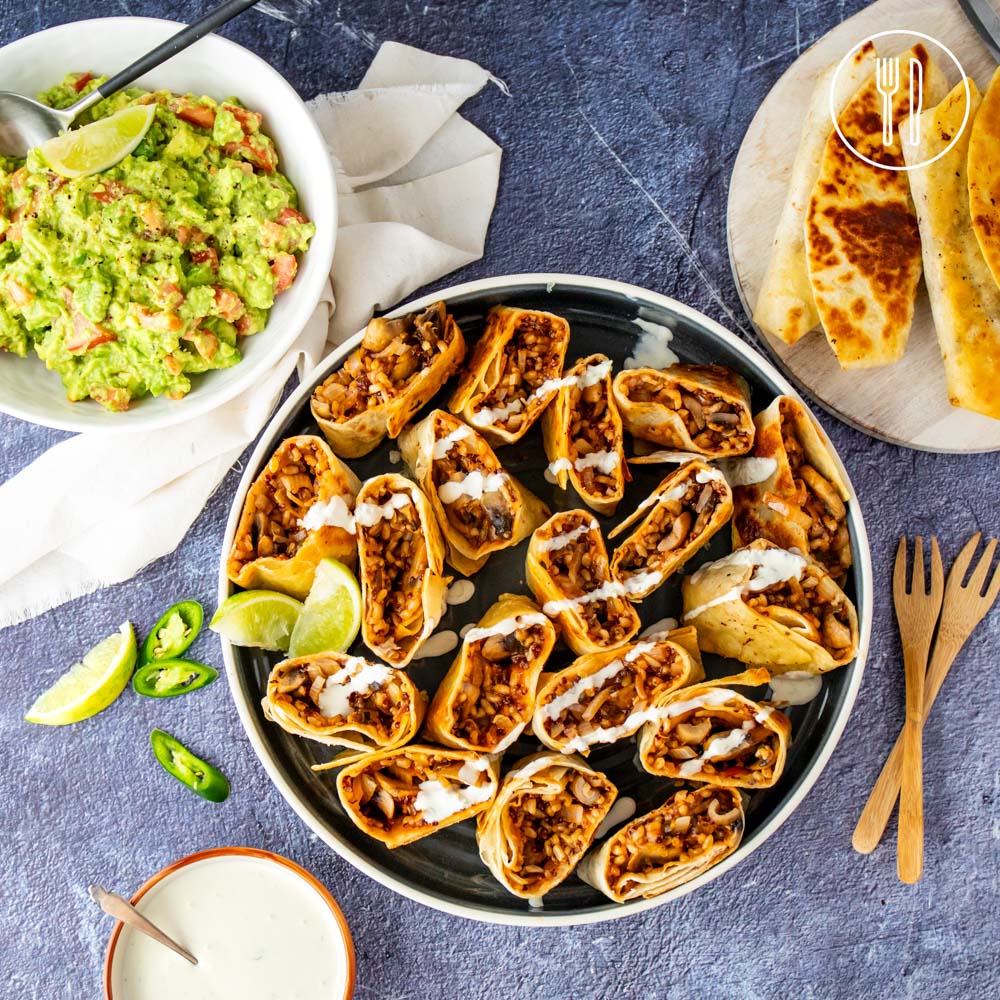 Mushroom Chimichangas with Guacamole and Lime Sour Cream