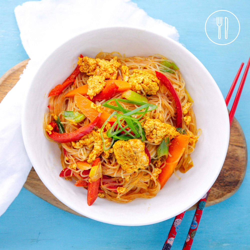 A quick and healthy stir-fry featuring chicken mince, tender carrots, and crunchy capsicum, all tossed with vermicelli noodles.