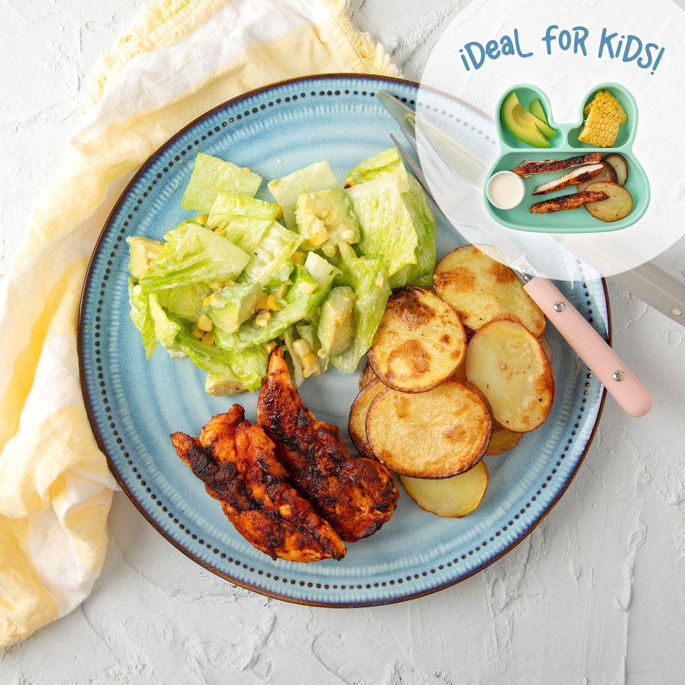 chicken tenderloins, tomato sauce, aioli, avocado, corn cob, lemon, baby cos lettuce, medium potatoes, garlic clove
